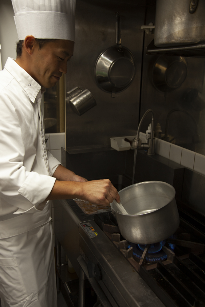 石川県金沢市出身。金沢市内のホテルでの調理経験を2軒経たのち、新しい店を出すチャレンジをしてみないかということで、ホテルの板長を通じて紹介を受ける。ホテルは決められたことの中で仕事をすることが多いため、1からやっていくのは面白そうだと思い入社を決意した。