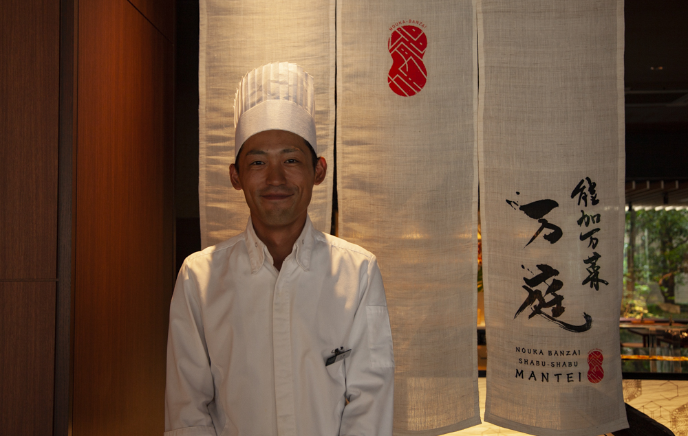岐阜県岐阜市出身。31歳 18歳から岐阜市の料亭、割烹にて8年間勤める。 25歳の時単身金沢市に移住。 能加万菜郷 店長兼料理長を務める。 能加万菜で実力を発揮し将来は独立開業を目指しています。